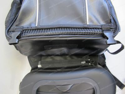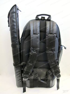 Рюкзак из водонепромокаемого ПВХ, непромокаемые молнии Имеется карман для подсачека. Встроенная пластиковая емкость 3,5 литра для живца, Полиуретановая прокладка между ёмкостью и сумкой. А так же имеется свой тубус. Внутренняя длина тубуса-60 см. На рюкзак одевается чехол, для защиты от грязи.