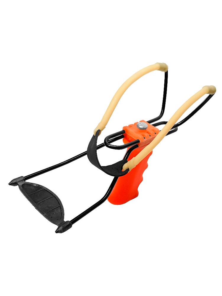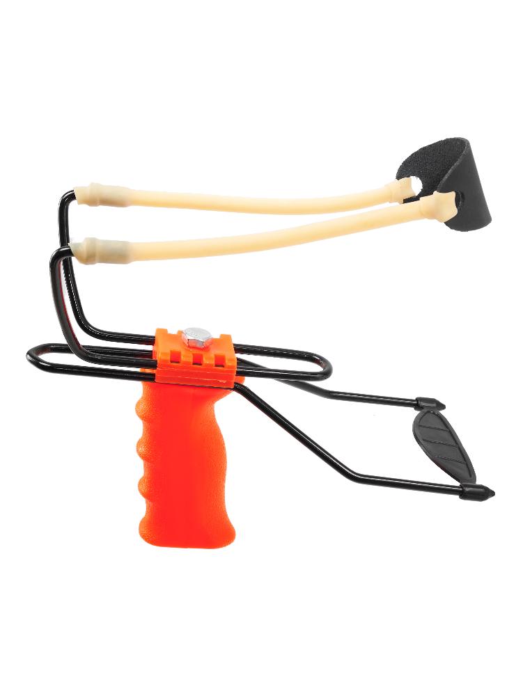 Спортивная рогатка изготовлена в виде пистолетной рукоятки с дополнительным кистевым упором для точной стрельбы и усиленной верхней частью. Рогатка изготовлена с оглядкой на профессиональные модели для соревнований.