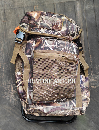 Стул-рюкзак Ordka Hauger - прочный, удобный и легкий функциональный рюкзак со стулом специально для охотников, рыболовов и активного отдыха, позволяет ставить стул даже на неровные поверхности и всегда держать под рукой необходимые мелочи. Стул крепитcя к рюкзаку стропами и легко снимается.
