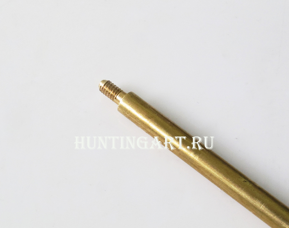 Выполнен шомпол из латуни. Ручка пластиковая, вращается для удобства чистки оружия. С другого конца - резьба внешняя для прикручивания чистящего инструмента - вишера, щетки, ершика.
