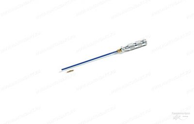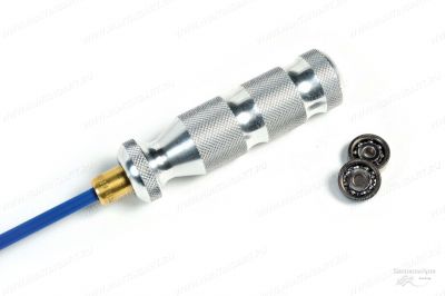 Пистолетный шомпол представляет собой стальной нержавеющий прут диаметром 5 мм с внутренней дюймовой резьбой 8/32, и рабочей длиной 20 см. Синие виниловое покрытие стержня шомпола толщиной 0,15 мм оберегает нарезы в канале ствола от прямого соприкосновения с металлом. Шомпол имеет крайне удобную анатомическую ручку из алюминия, которая легко вращается, благодаря встроенным в шомпол двумя закрытыми подшипниками. Подшипник защищен фетровым тампоном. Ручка вращается легко, есть свободный ход после вращения. В комплектацию также входит резьбовой адаптер FF (1/8 на 8/32) который позволяет использовать европейские ерши.