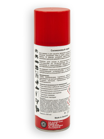 Силиконовый аэрозоль - это соединение, обогащённое силиконом, смазывает и защищает части, сделанные из каучука, полимеров, пластика и металлов. Проверенная совместимость со всеми материалами, используемыми в технике, промышленности и автомобилях. Рекомендуется для использования в пластиковых шестерёнках, пластиковых передаточных механизмах, каучуковых подшипниках, направляющих механизмах, контактных роликах, также как и в кабелях, оконных рамах и в обшивке автомобильных дверей, если она сделана из мягкой резины. Подходит для смазки патронов, заряжаемых в магазины - для уменьшения трения и снижения вероятности перекоса, задержки при подаче патрона из магазина в патронник.