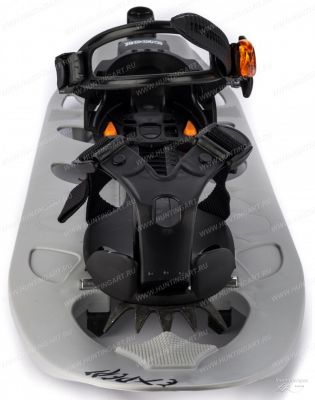 Для удобства передвижения по насту и льду в передней части крепления есть кошка (5 фронтальных зуба), а на нижней стороне снегоступа находятся шесть металлических шипов, для передвижения по фирну и насту.