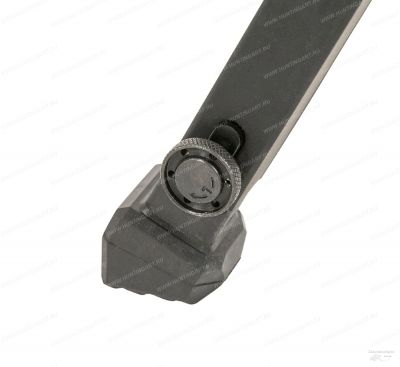 Регулируемые по длине 5-ти позиционные сошники с возможностью промежуточной фиксацией при помощи кольцевых фиксаторов для точно настройки высоты сошки. На промежуточном, между прорезями, расстоянии фиксация длины ног производится при помощи уникальной системы Posi-lock (колесо блокировки). А складываются ноги нажатием на фиксатор. При этом надо учесть, что если вы использовали для фиксации длинны колесо блокировки, то сначала нужно повернуть колесо блокировки в обратном направлении(разблокировать), а потом только нажимать на фиксатор и складывать ноги.