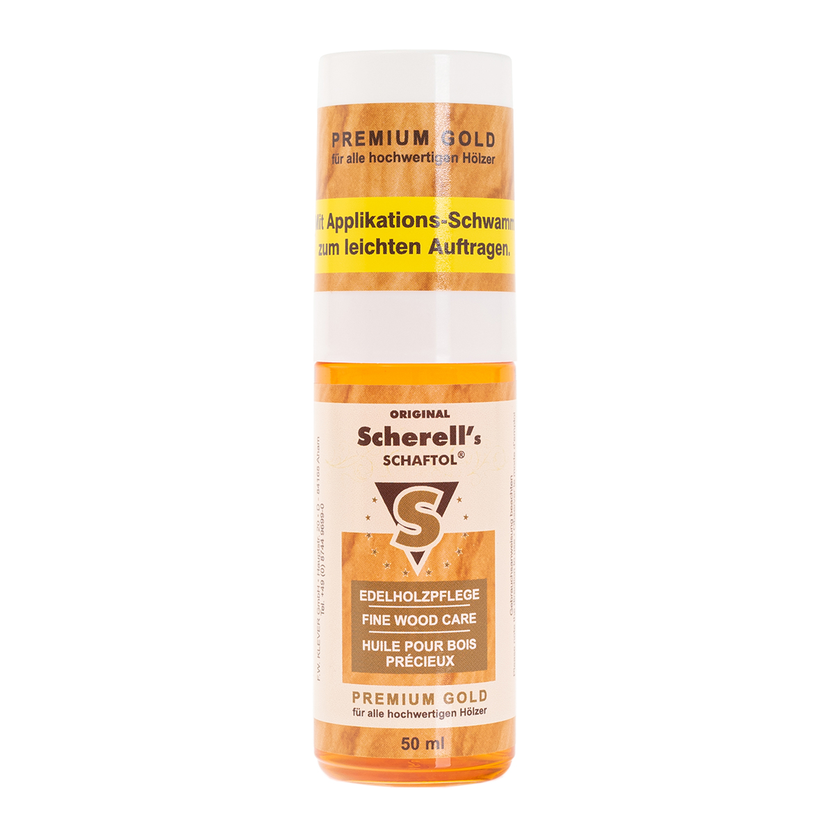 Средство для обработки дерева Schaftol Scherell’s Premium Gold (Золотистый) 23818 с губкой для равномерного нанесения, 50 мл от Немецкой компании Klever под брендом Schaftol.