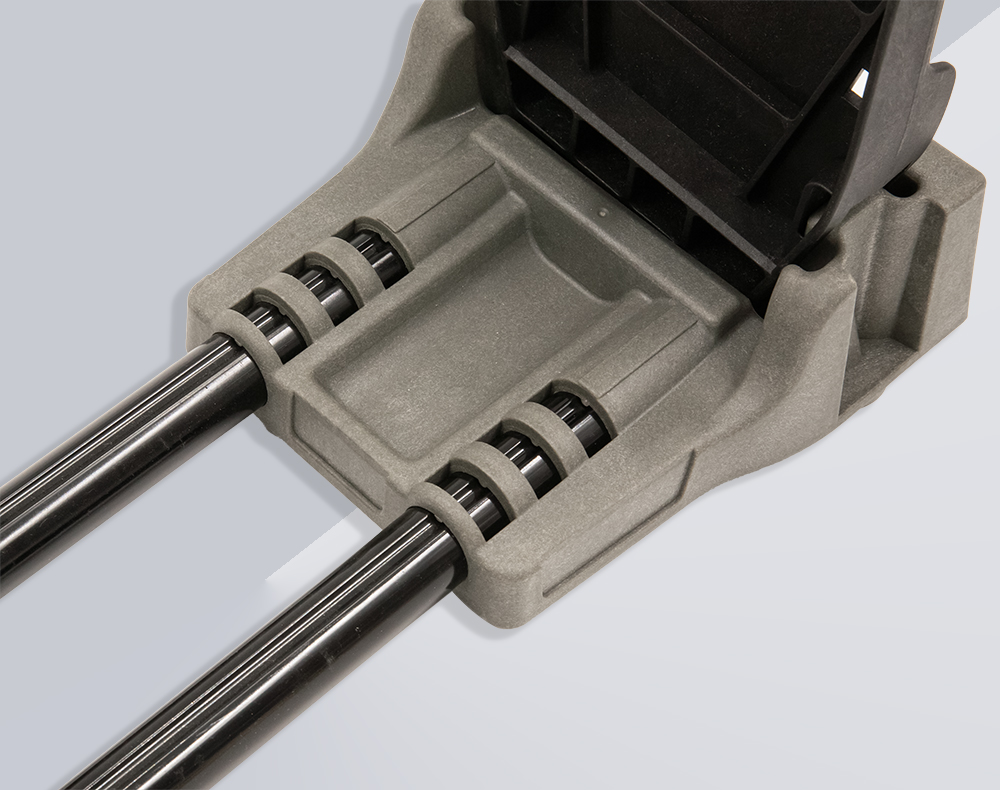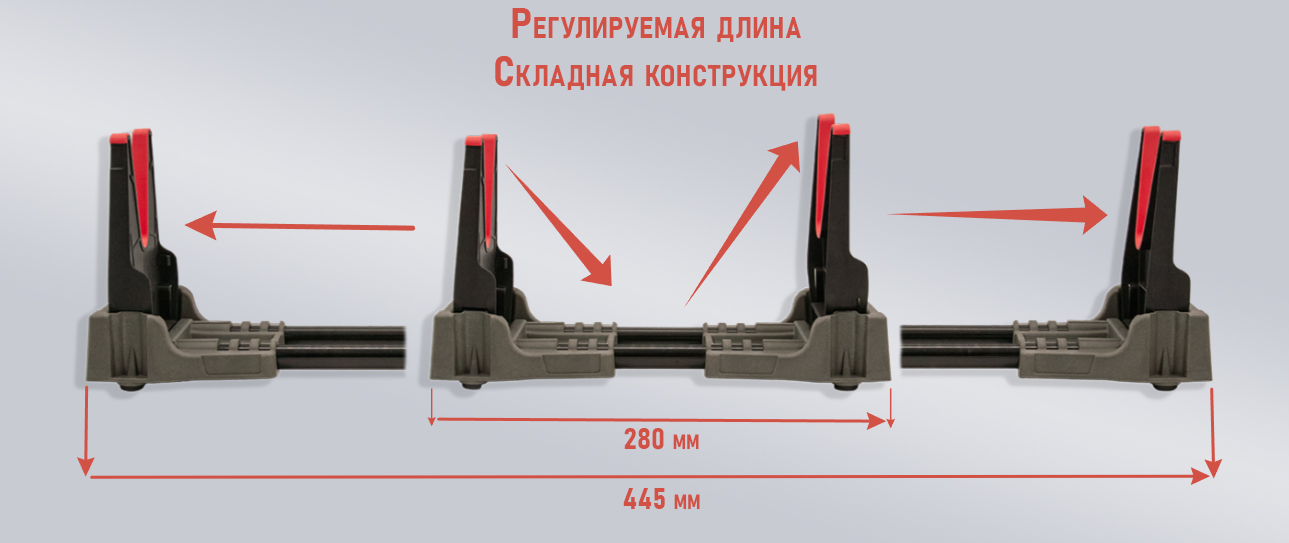 Станок изготовлен из высококачественного, устойчивого к агрессивным жидкостям и маслам нейлона. Опоры под оружие выполнены их прорезиненного материала надежно фиксируют оружие во время чистки. В основании расположены шесть резиновых ножек, обеспечивающих устойчивое, нескользящее основание. Регулируемая длина от 28 до 44,5 см.