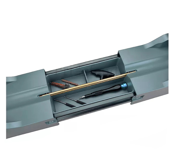 Идеально подойдет для хранения и транспортировки чистящих средств, за счет специальных отсеков для шомпола и ершиков на дне чистящего станка. В комплекте со станком поставляется разборный трех секционный шомпол .22 калибра и два ершика.