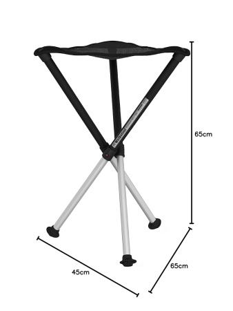Сиденье выполнено из черного полиэстер и на 20% больше по размеру чем у обычных стульев-треног. Ножки стула серые хорошо сочетающиеся с цветом сиденья.