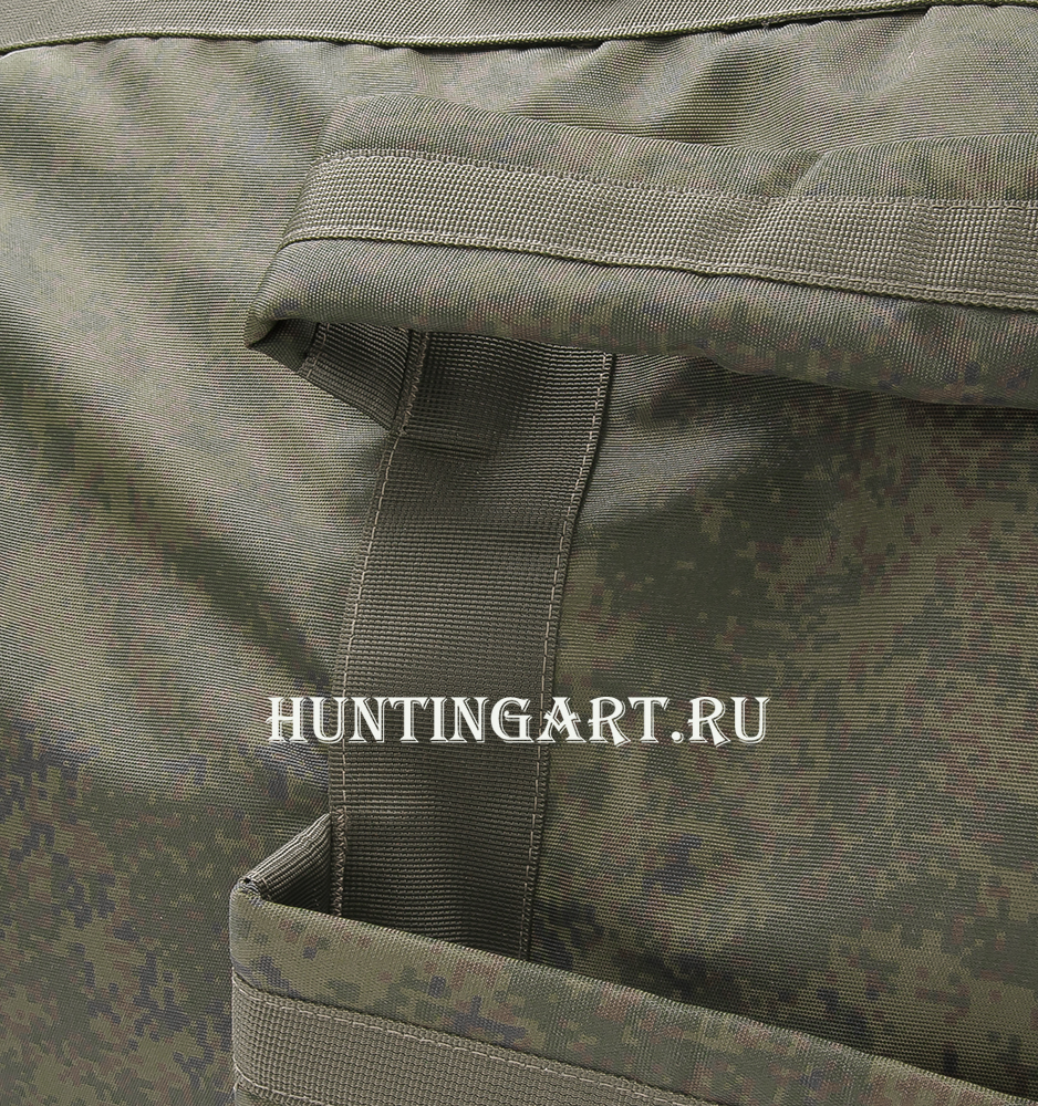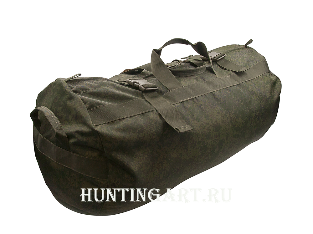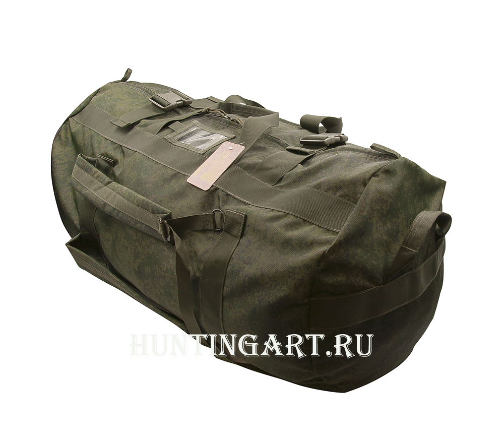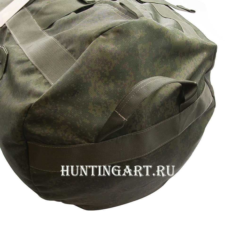 Вещевой баул из влагостойкого нейлона объемом 110 литров в расцветке ЕМР. Переноска баула возможна как рюкзак, либо как сумку. Прочные армированные швы и фастексы на молниях.