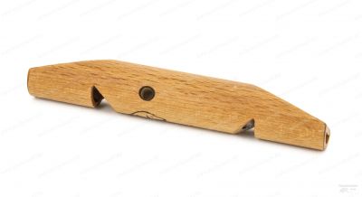 Двухсторонний свисток ручной работы позволяет использовать 2 различных по тону сигнала. С одной стороны помещен шарик, с помощью которого воспроизводится звук, похожий на спортивный свисток. Свисток изготовлен из натурального дерева с нанесённым рисуном, силуэта охотничьей собаки. Шнурок для подвески продевается в отверстие в середине свистка.