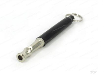 Свисток издает громкий звук в ультразвуковом диапазоне, неслышном для человека, но хорошо слышном для собаки. Есть защитный пластиковый колпачок, черного цвета. На колпачке кольцо для подвеса его на шнурок. Хорошо действует на дальние дистанции.