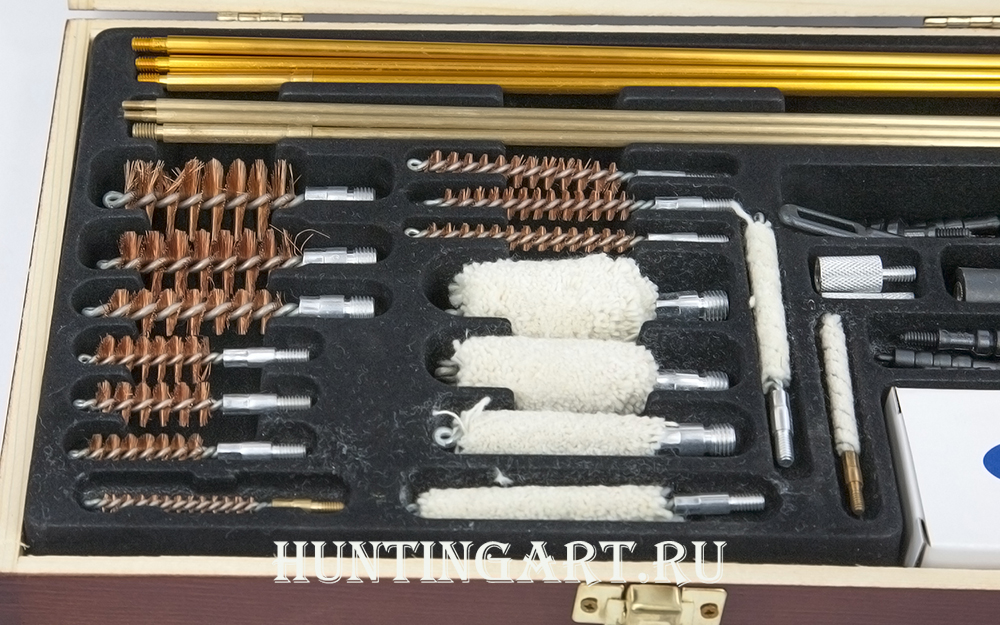 Универсальный элитный набор для чистки оружия на 35 предметов в деревянном кофре от Американской компании DAC Technologies.