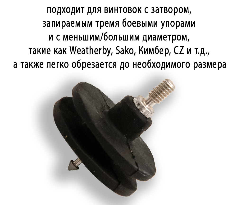 Вишер для патчей с универсальной формованной насадкой подходит для винтовок с затвором, запираемым тремя боевыми упорами и с меньшим/большим диаметром, такие как Weatherby, Sako, Кимбер, CZ и т.д., а также легко обрезается до необходимого размера.
