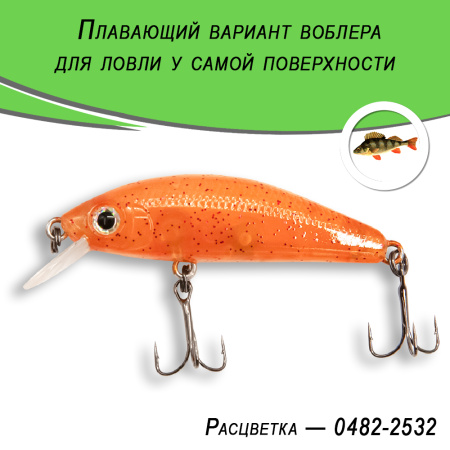 Девять оригинальных расцветок для ловли мебару. Плавающий вариант воблера для ловли у самой поверхности. Прекрасно подойдёт для ловли нашего родного окуня... Но и форель с хариусом, кормящиеся у поверхности, не пропустят его мимо... Эту приманку обязательно надо иметь в своём боксе любому спиннингисту предпочитающему сверх лёгкий класс снастей...