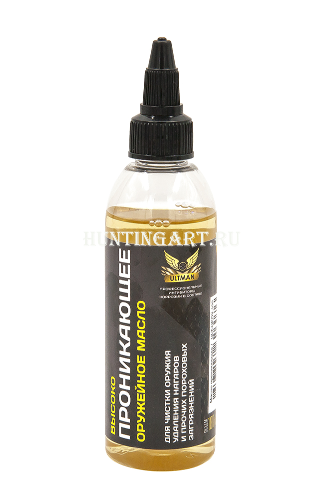 Высоко-проникающее масло Ultman (100мл) с ингибиторами коррозии. Глубоко проникает под загрязнения и нагары, позволяет легко удалять их с поверхности механизмов и внутренней поверхности стволов оружия.