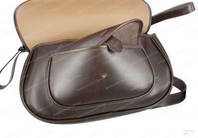 Ягдташ изготовлен из натуральной кожи. Материал очень прочный и долговечный, водонепроницаемый и способный долгие годы не терять первоначального привлекательного вида. Кожа, из которой изготовлена охотничья сумка, держит форму, изделие всегда будет выглядеть аккуратно, а вещи, помещенные внутрь (в том числе документы, боеприпасы или пища) останутся неповрежденными.