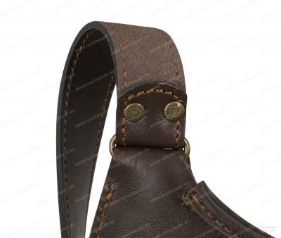 Внутреннее отделение закрывается на кожаный ремешок для надежности, верхний клапан свободно располагается сверху и служит сохранности содержимого ягдташа. На клапане закреплены тороки – 8 ремешков с кольцами и для пойманной дичи. Сумка имеет два дополнительных кармана. Один карман расположен на внешней стороне сумки под клапаном, его размер 23 х 12 см, застегивается на кнопку. Второй – внешний прорезной карман на другой стороне сумки (ширина прорези 22 см), карман величиной с заднюю сторону сумки. В комплект входит сетка – сетчатая сумка, размером 34 х 38 см с закрывающим клапаном высотой 24 см. Сетка может храниться внутри ягдташа отдельно, может быть пристегнута кожаными ремешками на специальные петли внутри сумки под клапаном, может быть пристегнута снаружи, с боков сумки, на кожаные ремни длиной 18 см (регулируются). Плечевой ремень регулируется по длине, максимальная длина 130 см. В отделке снаряжения используется качественная фирменная фурнитура компании Vektor.