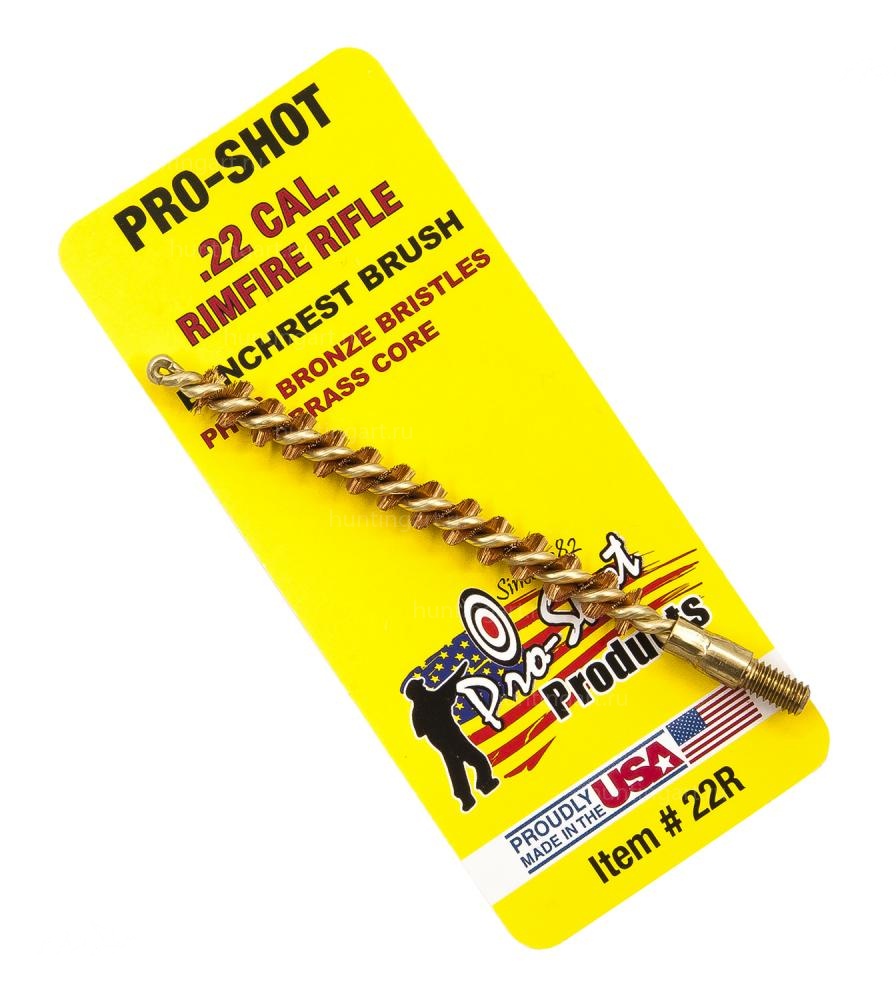 Pro-Shot производит превосходные щетки для стрелков, которые выдерживают частое использование. Конструкция состоит из высококачественного латунного сердечника и муфты с очень толстыми бронзовыми щетинками. Ершик подходит для чистки оружия калибра .22 (222, 223). Подходит под шомпола американских производителей таких как Pro-Shot, Dewey, Bore Tech, Tipton и др.