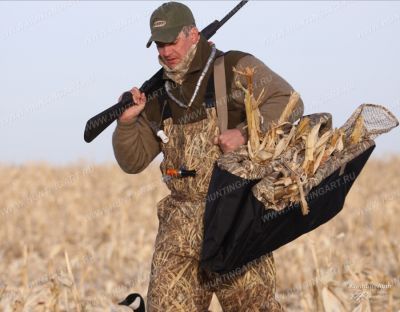 Главное при охоте на гуся и утку весной - идеальная маскировка и внезапность появления охотника. В этом деле неоценимую помощь окажут американские засидки на водоплавающую дичь. Охотник находится в полулежачем положении, всегда готовый поднять корпус для стрельбы, что очень проблематично сделать находясь длительное время просто в горизонтальном положении. Внутри засидки охотник может и поворочаться, не боясь спугнуть осторожную птицу. При этом профиль самой засидки достаточно низкий, чтобы визуально слиться с поверхностью земли. Засидка дополнительно может маскироваться сопутствующей растительностью, для этого по периметру в несколько рядов имеются специальные петли. Подлетающие к подсадным чучелам птицы замечают ваше появление при изготовке вести стрельбу слишком поздно.